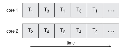 - Data parallelism – distributes subsets of the same data across multiple cores, same operation on each