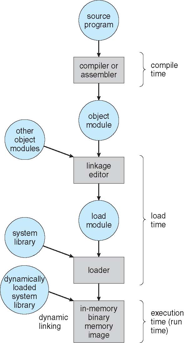 - Address binding of instructions and data to memory addresses can happen at three different stages