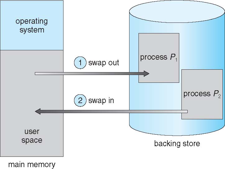 - A process can be swapped temporarily out of memory to a backing store, and then brought back into memory for continued execution
